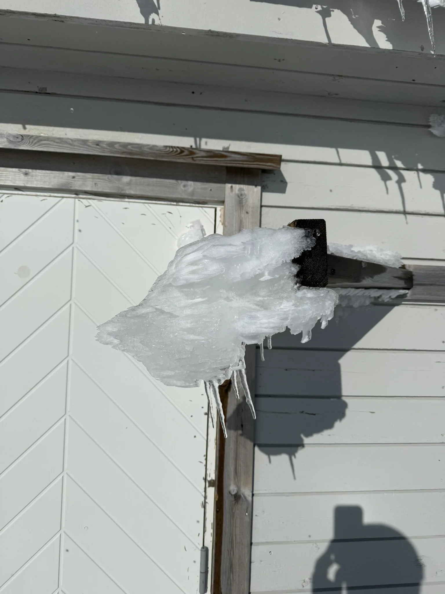 «Holmaskjer» er hytta som stiger opp fra Folgefonna, på et skjær i selve breen – 1565 moh. Her oppe er vi gang med å sette opp ei sikringshytte – for skulle noe skje med hovedhytta er hundre-og-ett virkelig ute, for på værharde dager fryser snøen fast sidelengs.